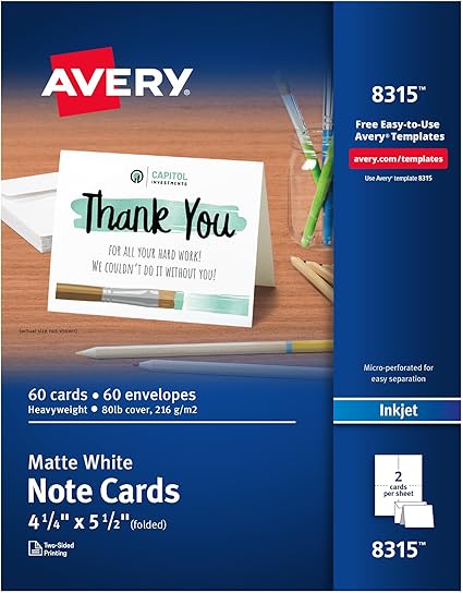 Avery offers a simple way to produce personalized cards that meet both professional and personal needs. The 80 lb / 216 gsm matte cardstock ensures sturdiness and resists smudging during printing.