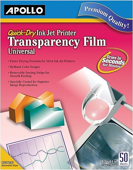 4. Apollo Transparency Film for Inkjet Printers, Universal, Quick Dry, 50