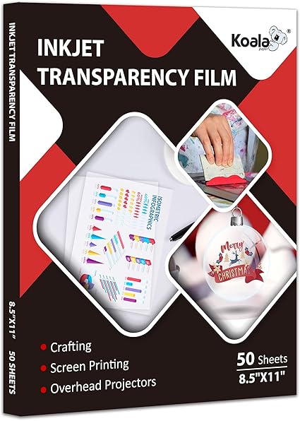 KOALA Transparency Film delivers sharp and vivid prints, perfect for both inkjet and laser printers. Its smooth, glossy finish produces crisp images without curling, making it ideal for presentations, crafts, and silk screen printing projects.