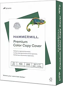 The Hammermill Premium Color Copy Cardstock offers a reliable and bright surface for vibrant prints. Its balanced weight and sustainable production make it suitable for varied printing needs.