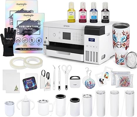 The Epson SureColor F170 Sublimation Starter Kit delivers vibrant, professional-quality prints tailored for creative projects. With precision droplet control, it excels in producing detailed sublimation designs on diverse items like tumblers, mugs, and shirts.